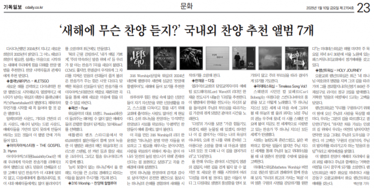 뮤직타임 [기획기사] ‘새해에 무슨 찬양 듣지’ 국내외 찬양 앨범 7개 추천(기독일보)